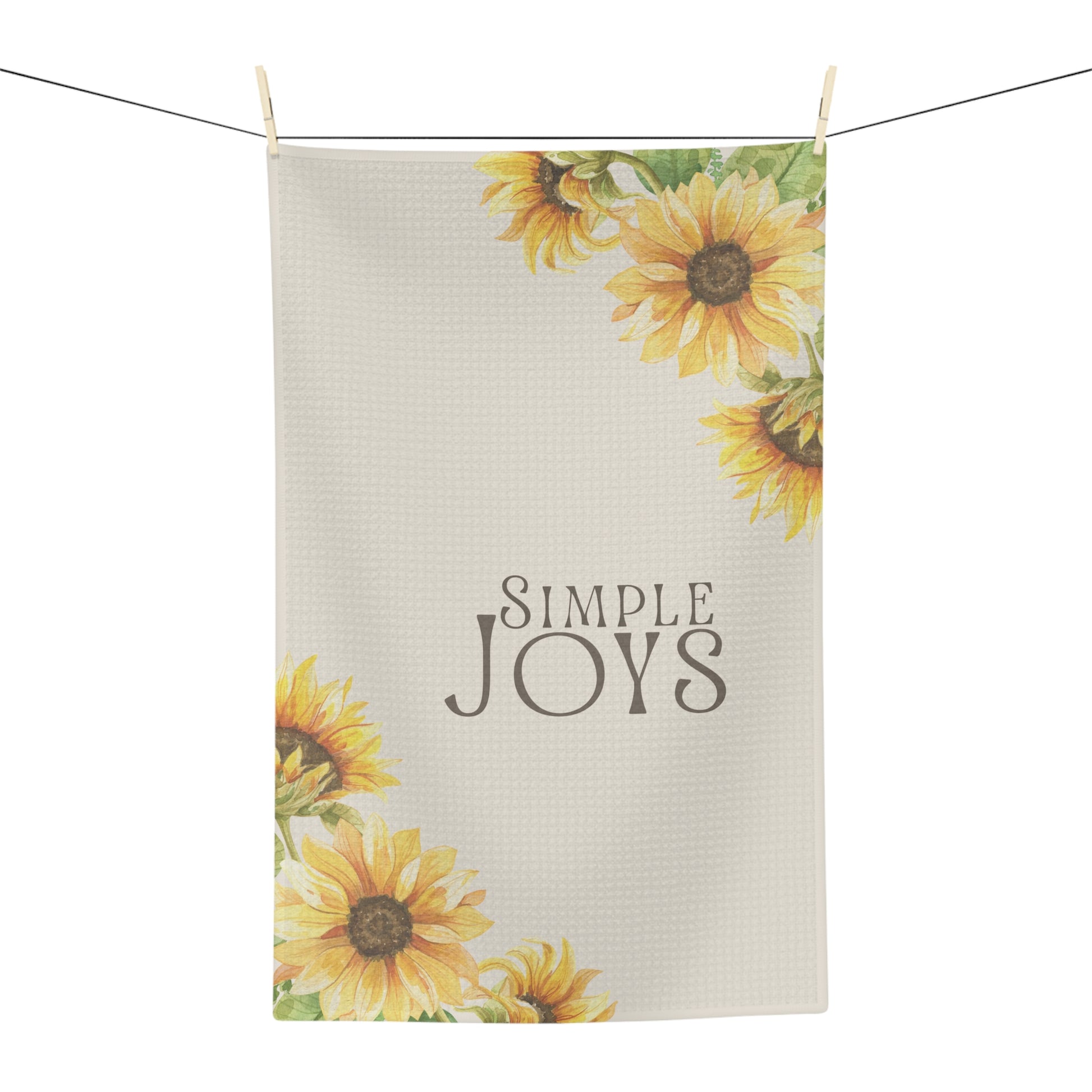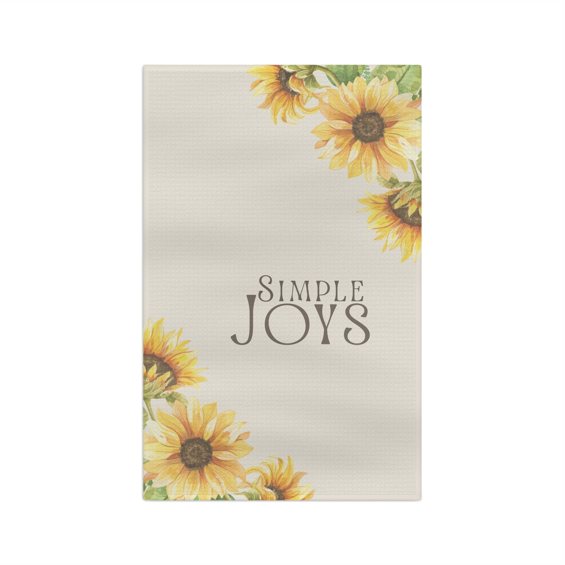 Bright watercolor sunflowers frame the words Simple Joys, bringing warmth and quiet charm to your kitchen. Soft neutrals and rustic lettering create a look that feels calm, welcoming, and lived in.